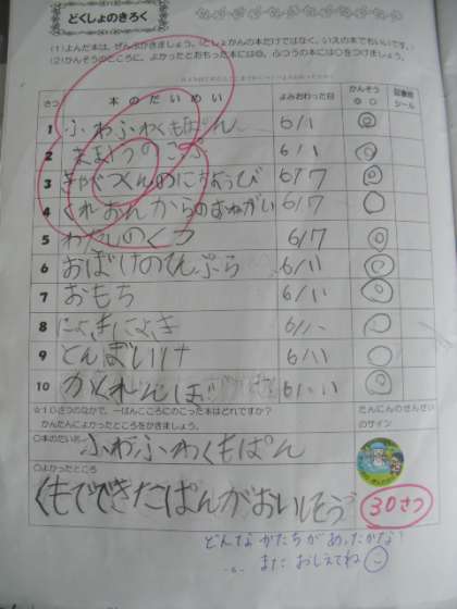 1年生も読書ノートを使い始めました。