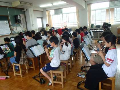 音楽の授業では鑑賞の学習をしました。組曲「惑星」より木星をききました。初めは,「どんな曲かな?」と思っていた子どもも,「きいたことある!!」と驚いていました。そして,曲の構成がどのようになっているかを学習しました。