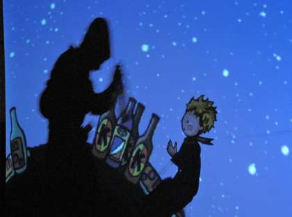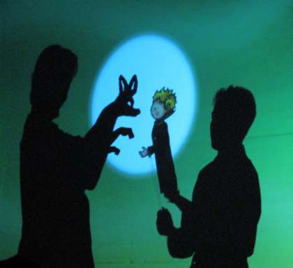 前半,子どもたちは手影絵によるウサギの作り方を教えてもらったのですが,演劇鑑賞後も楽しそうに作っていました。