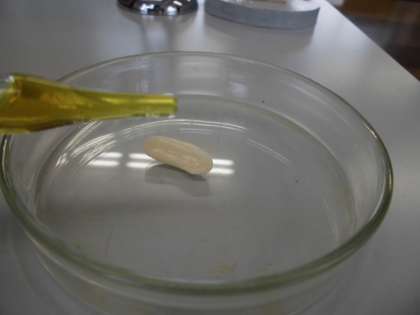 ヨウ素液を使い,種子の中のどこに養分があるのか実験を通して,発芽と養分の関係を調べました。室内がヨウ素液のにおいで満たされ,