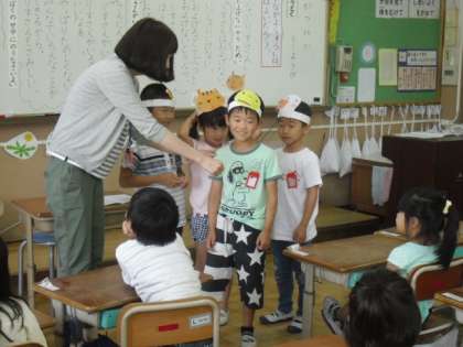 公正・公平・社会正義という内容項目で「みんなおなじ」という授業を行いました。「およげないりすさん」というお話を通して「みんなでなかよくするには,どうすればよいか」を考えました。授業の中でお面をつけて,役割演技を行い,登場人物の気持ちに近づけるようにしました。子どもたちの意見からは,あたたかい意見が多くでました。今日感じた気持ちを大切に,みんなで仲良くしてほしいと思います。