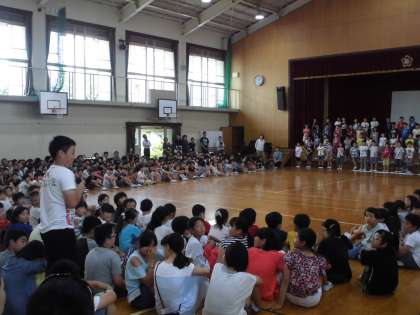 外国語活動で学んだ歌や,リコーダーの演奏,そして,「いろはうた」を群読しました。