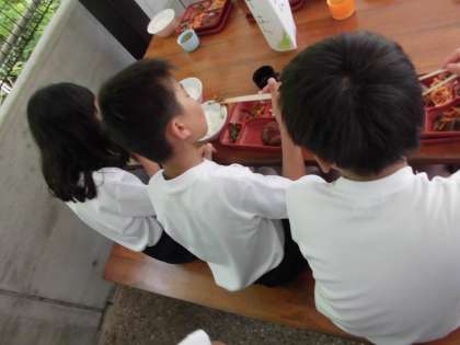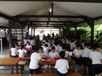 昼からの磯観察にむけてしっかり食べています。