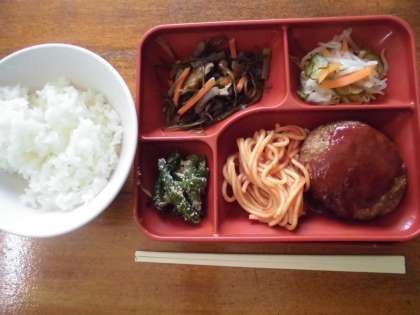 お昼ごはんはハンバーグです。