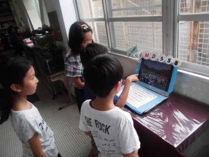 学校の様子をスライドショーにして流しています。