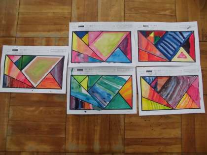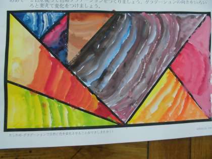 図工の学習で絵の具の使い,グラデーションにぬっていく技法について学習しました。グラデーションを作るためには,水の量と絵の具の量を調整することがとても大切です。また,混色を生かしながらグラデーションをつけていくこともできるので,混色を生かした技法に挑戦する子もいました。