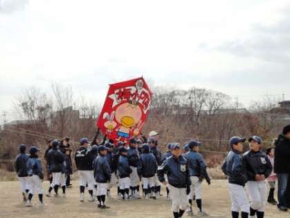 少年補導主催の一週間延びた凧揚げ大会が23日の日曜日にありました。