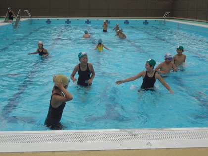 水着に着替えたらさっそくみんなで体操をしていざプールへ!