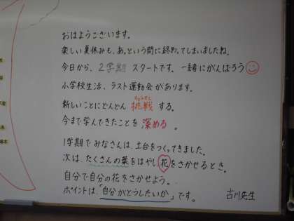 夏休み明け,どうぞよろしくお願いいたします。