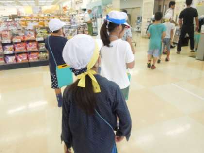 店内だけではなく,バックヤードも見学させていただくことができました。「お肉は大きなかたまりでお店にやってくるんだな。」「それを切ってお客さんに売っているんだな。」「果物を切っている人がいるな。」「魚を切る場所やお肉を切る場所はとても涼しくしてあるんだな。」など,たくさんの気づいたことを一生懸命メモをしていました。