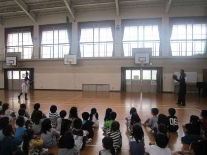 女子プロ野球球団の京都フローラさんが,1年生にオリジナル自由帳を贈呈しに来校してくださいました。プロ野球選手の投手の方も2名来てくださり,実際に子どもたちの目の前で,普段の練習の様子を披露してくださいました。あまりの球の速さに,子どもたちの目は丸くなっていました。質問にも丁寧に答えてくださり,とても楽しい時間を過ごすことができました。