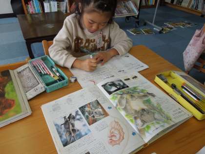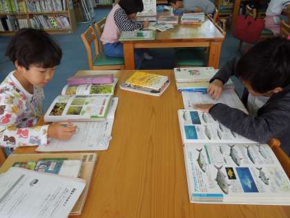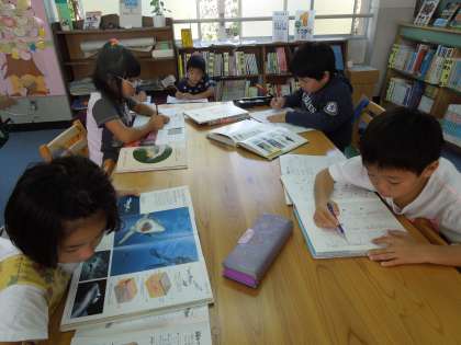 どのクラスも,図かんを使うとき,「もくじ」や「さくいん」を使うと,便利だということを学習しました。そこで今回は,それぞれが使いたい図かんを選び,詳しく知りたいことを絵を文でまとめました。