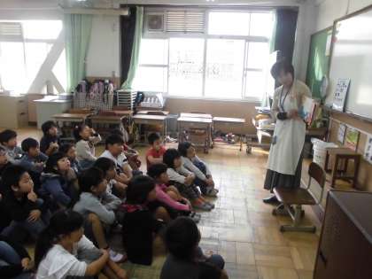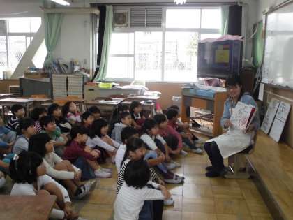 朝読書の時間に,読み語りをしていただきました。お話にじっと耳を澄まし,面白い場面があると,どっと笑いが起きる。生声の読み語りに,10分間は異空間になりました。とても素敵な時間です。