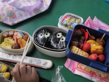 お弁当タイム!みんないい顔しています。おいしいお弁当には愛がたっぷり入っています!