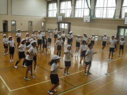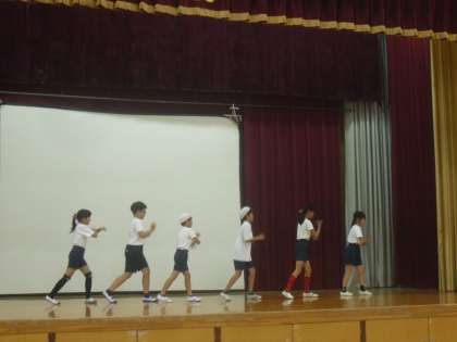 体育の学習でダンスをしました。グループでどんな動きができるか,どんな隊形で表現できるか,話し合いをしながら,練習を積み重ねてきました。最後の時間には,局に合わせてすてきなダンスを発表しました。