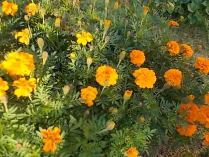 いまはマリーゴールドや日日草,百日草の花が咲いています。