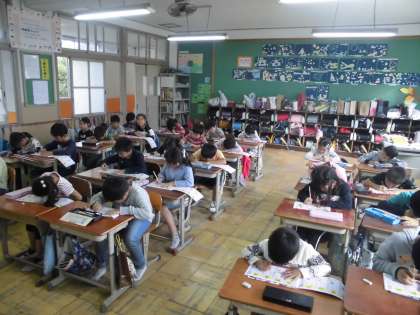 字を書く時,視力が落ちないように姿勢を気を付けなくてはいけませんね。ノートを書く・プリントを書く等書く作業がとても多くなった2年生。
