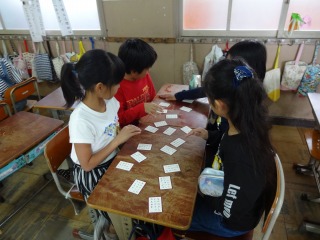 古典の日の取組で百人一首に挑戦しました。百人一首を題材にした映画もあり知っているものもあったようです。