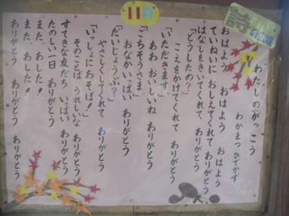 11月の詩は、「わたしのがっこう」という校長先生が作られた詩です。