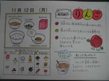 今日は,新献立の「オレンジ アップルン」が登場しました。