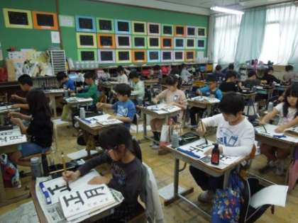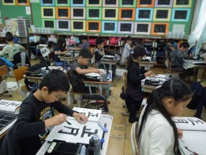 また,小筆の使い方を学習し,今日は自分の名前を小筆で書きました。
