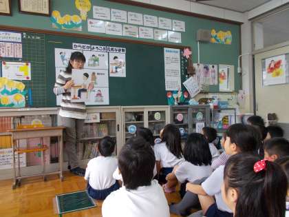 2学期で2度目の体重測定を行いました。今回は,荒木先生に「良い姿勢」について,お話をしていただきました。悪い姿勢を続けると,内臓まで悪い影響がいってしまうという話に子どもたちとびっくりしました。教室でもなぜ良い姿勢ですごさないといけないか,改めて考えることができましたね。