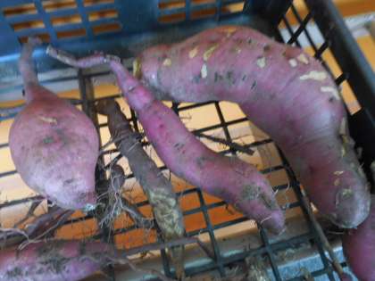 夏休み前に植えた,サツマイモを収穫しました。今年の猛暑の影響もあるのか,小さいサイズが多かったのですが,いくつか大きいものもとることができました。