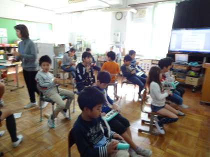 3時間目に音楽をしました!クリスマスの曲を練習し,きれいな歌声が教室中に響きました!「お寺の和尚さん」では,じゃんけんで盛り上がり笑顔があふれていました!12月にむけて合奏の練習もがんばっています!