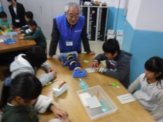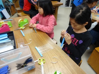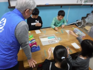万華鏡づくりでは,とても細かな工程もありました。難しい部分はモノレンジャーの方に教えていただきながら仕上げていきました。