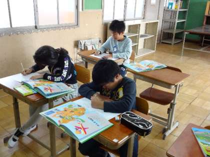 日本の都道府県について地図帳などの資料をみて県庁所在地や名産などを調べてまとめています。今日は近畿地方の県について学習しました。知っている都道府県ということもあり,地図に載っているもの以外でも有名なものをたくさん発表してくれました!