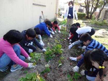 軍手をつけて準備万端!さつまいもを傷つけないように気を付けながら土をほっていました。すると少しずつさつまいもの姿がみえてきました!