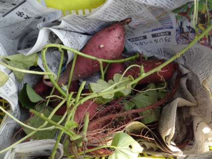 子どもたちはうれしそうにしながらとれたさつまいもをみせてくれました。収穫したさつまいもを使って今後調理をする予定です。