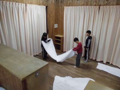 起床、朝食、掃除を終えて、宿泊棟を出ました。