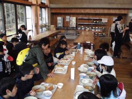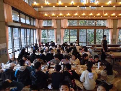 予定通り13時45分に退所式を行い、学校に戻ります。