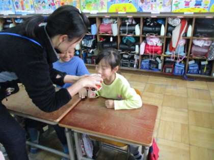 目で味わったり,においが食欲を増したりしていることを確かめ合いました。ご飯とおかずを一緒に食べると,口の中で味が混じり合い,口中調味ができることも学習しました。給食の時にやってみると,「おいしく食べられた。」という声もあがっていました。お家でも,口中調味をやってみてください。
