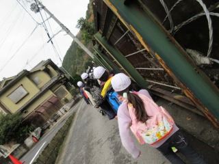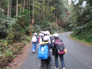 長良山に挑戦です。初めは民家の中を通りました。しかし,だんだん坂がきつくなり「え〜っ!!」「まだ!?」などたくさんの声が聞こえました。
