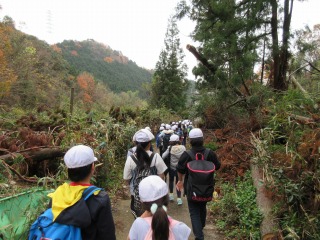 小関越えです。第一立坑までもう少し。下り道になると元気いっぱいの子どもたち。前日の雨により,足元が少し滑るところもありました。