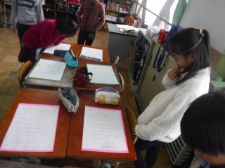 お互いの詩を見合うと,自分の使っていない表現に「次は使ってみよう」という振り返りもありました。
