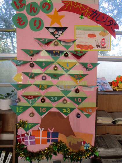 アドベントカレンダーがありました。子供たちも興味津々で楽しみに見ています。