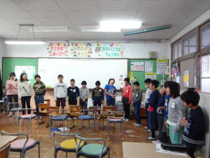 3時間目にマリアヴィラに向けて最後の練習を行いました。本番と同じように並び,冬の歌やクリスマスの歌を練習しました。高学年はセリフもしっかりと覚えていました。本番をとても楽しみにしてるようでした。