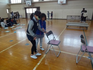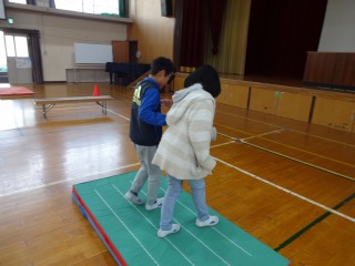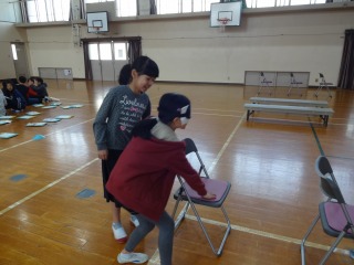今回は,目の不自由な方の生活をアイマスクをつけて体験し,介助する手引き体験もやりました。