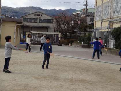 羽子板や駒,福笑い,すごろく,かるたなどいろんな遊びを用意しました。子どもたちは興味のある遊びを自分で決めて,友達と仲良く遊んでいました。