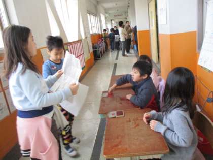 先週から準備をはじめて,ゲームや遊びが出来上がりました。今日は,グループで交代しながら,店番とお店回りをしました。