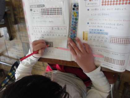 算数のノートにずいぶん書けるようになりました。めあて→自分の考え→まとめ→ふりかえりの4つの流れで,まとめながらノートを書く力がついてきました。