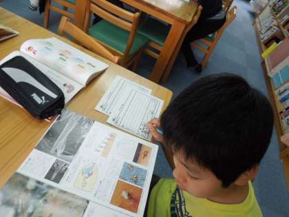 自分でテーマを決め,調べる本を見つけ,最後は「研究レポート」としてまとめます。総合的な学習でいっぱい「情報カード」を使って,調べることを進めてきたからでしょうか,すぐに集中して調べています。学校司書に寄せられる質問も,テーマを深めるような質問が多いです。