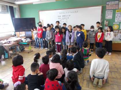 1年生を迎え,自分達ではじめの会を行い,おもちゃランドの開幕です。自分達の力でやり切る楽しさを味わおうとしています。