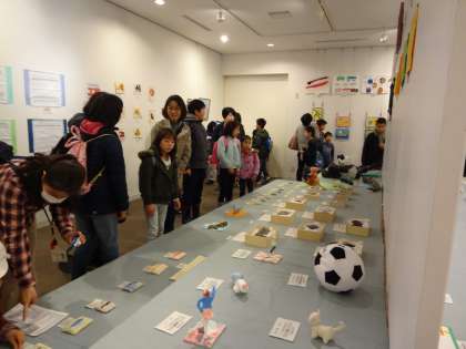 御池ギャラリーで,自分たちの作品を見つけると「ここに僕の作品があるよ!」,「私の作品!」という声が子どもたちからあがっていました。また他の学校の友達の作品や中学校の作品をみて,楽しそうに鑑賞していました。