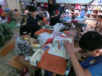 4年生は図工「ゴー!ゴー!ドリームカー」の学習で,風やゴムの力で走る車を作りました。