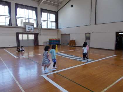 警察の方に来ていただき,交通安全教室を行いました。今回は正しい道の歩き方を教えていただきました。道の右側を歩くこと,横断歩道でも左右を確認して道路を渡ることなど,1つ1つ確認しながら実際に練習を行いました。下校にも少しずつ慣れてきたころですが,今回教わったことをしっかりと,毎日の登下校にも活かしてほしいと思います。