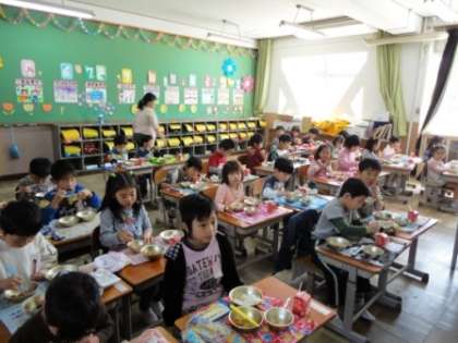 1年生にとっては,初めての給食でしたが,しっかり食べていました。